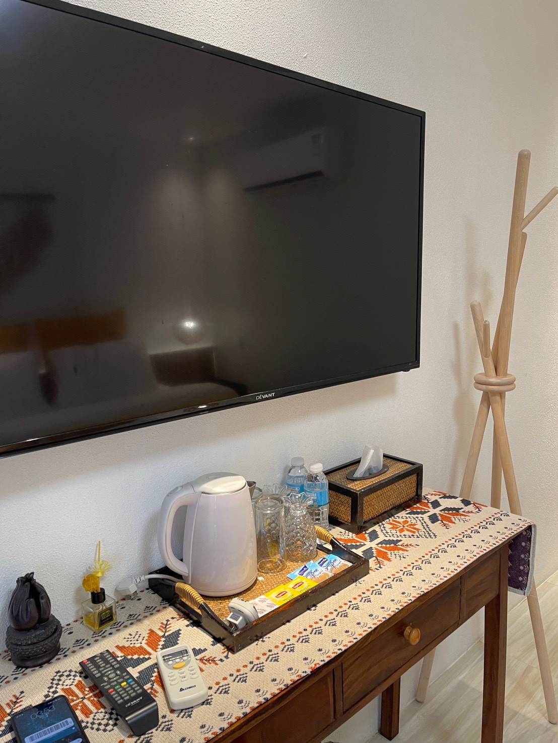 雖然房間沒有衣櫥,但因為空間算大