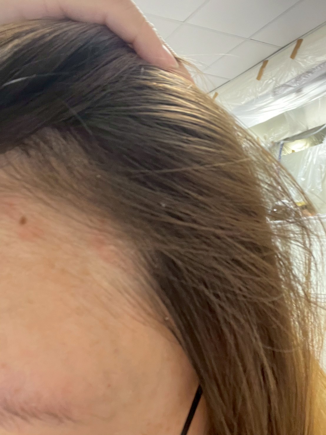 我的頭皮處泛紅緊繃,雖然很乾但同時也很油膩