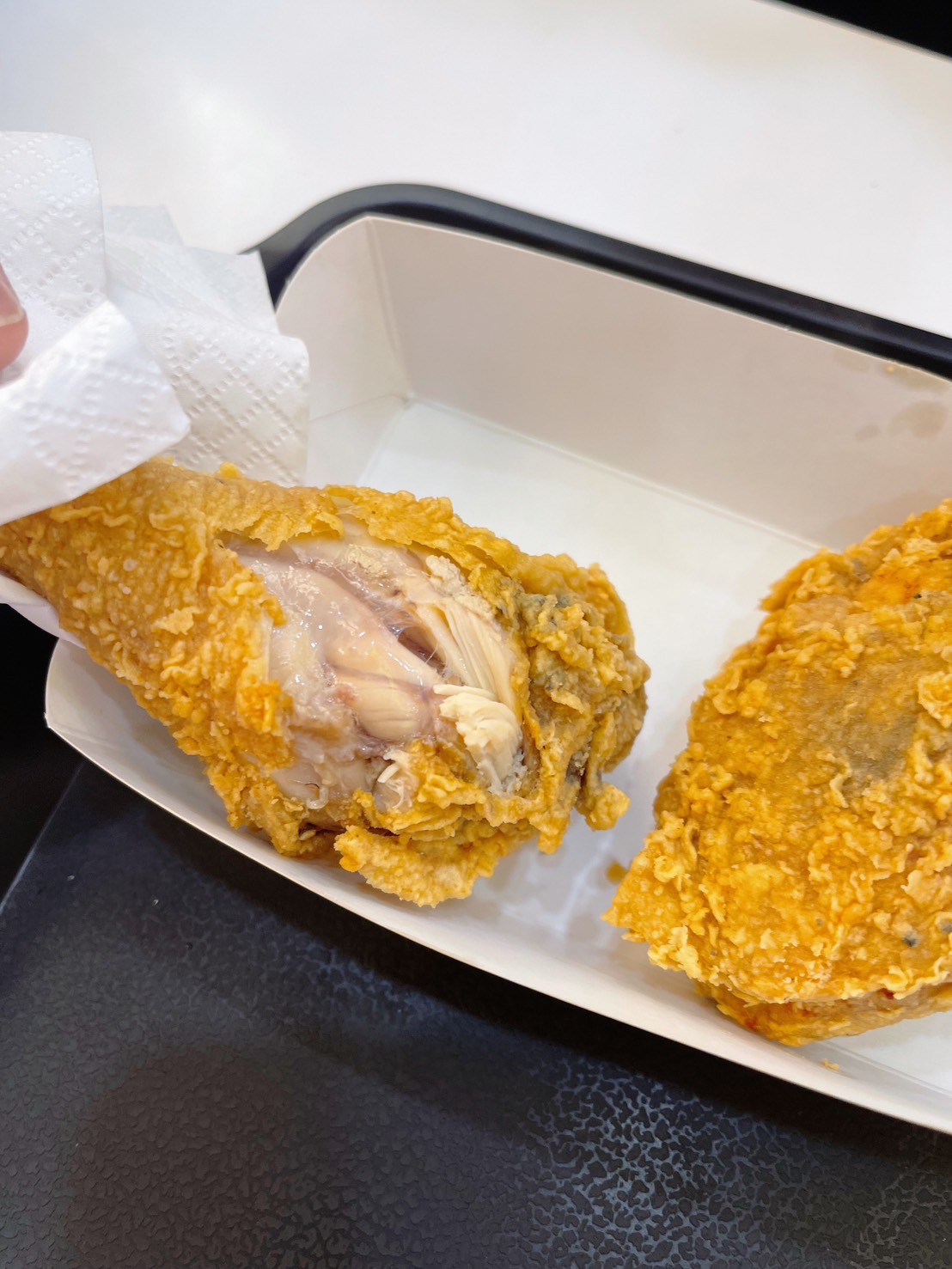 炸雞算多汁,但吃起來沒什麼味道