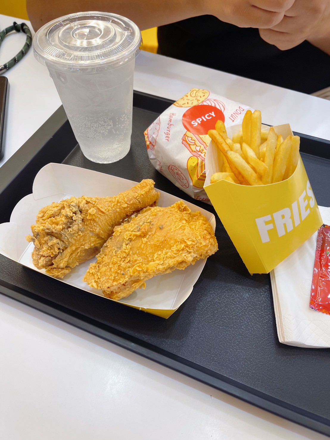 最後我們點了一個炸雞套餐與單點漢堡